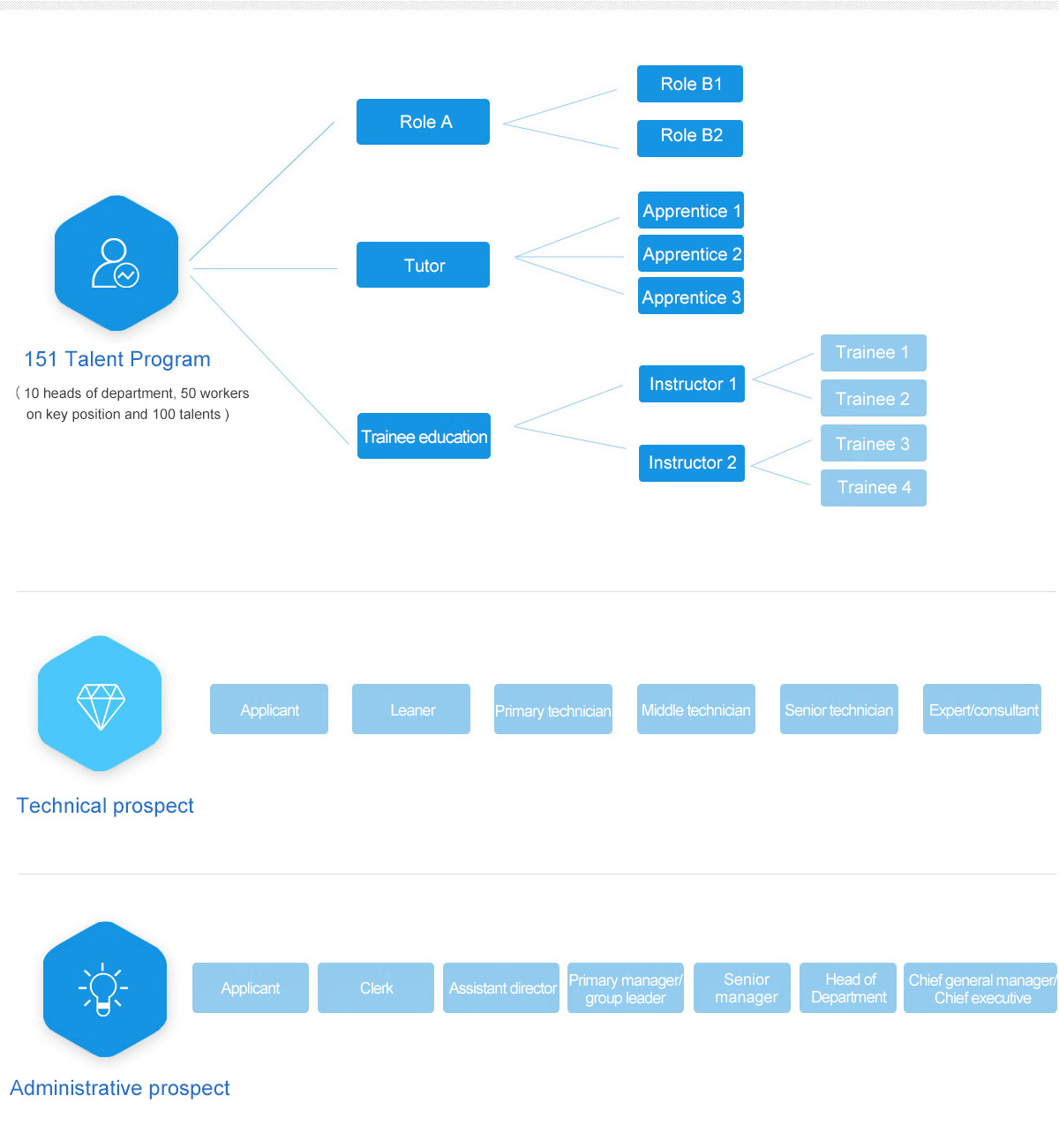 The company is developing quickly in 2018 as a listed company, thus much more talents are required. To this end, the company intend to implement a talent pool program called “151 talents program” to provide labour resources for key posts by A-B roles, master and apprentice and other methods.